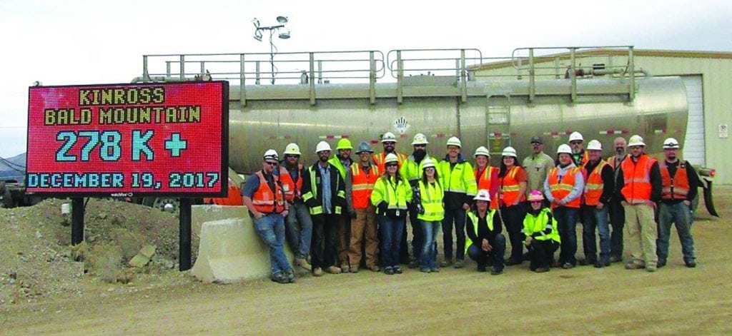 Kinross Gold Corp’s Bald Mountain Mine employees celebrated surpassing the company’s goal to produce 278,000 ounces in 2017.