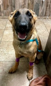 Draco, a seven-month-old Belgian Malinois-German Shepherd mix and Bristlecone Animal Aid Rescue & Xpress mascot, has been diagnosed with what medical experts think is life-threatening Precursor-Targeted Immune-Mediated Anemia.