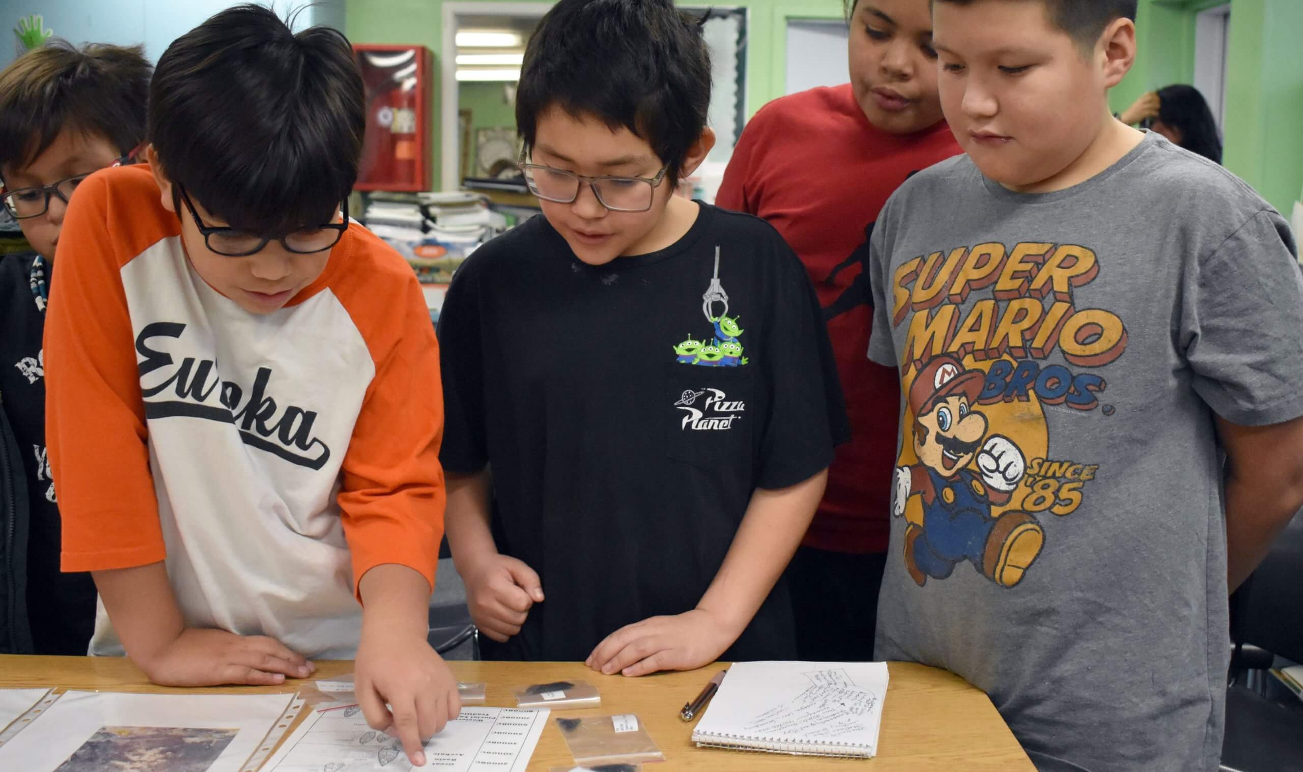 Also presenting were fellow Ely District employees Archaeologist Ethan Kumm and Wildlife Specialist Elizabeth Nohr who brought with them Native American artifacts and paw-shaped rubber stamps and multiple ink pads with which to create animal tracks.