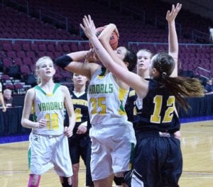 In the Saturday championship at the Orleans Arena, Gutierrez outdueled Garrett, getting a game high 21 points on the way to 40-35 win and first title since 2003 when they were a 2A school. Gutierrez had 13 of her 21 points in the second half.