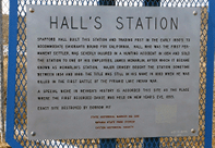 Enterprising Spafford Hall saw an opportunity to make his fortune catering to the needs of the local miners and travelers passing through to the “real” gold fields in California. Hall constructed a substantial log store alongside the California Trail to become known as Hall’s Station. This was the first business established in what would later became known as Dayton, and Hall was the first permanent settler.