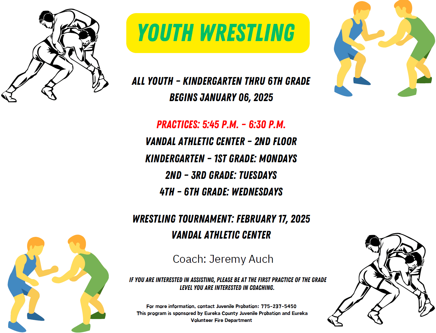 January 17 @ 8:00 am - 5:00 pm Wrestling Tournament Vandal Athletic Center 1 Vandal Way, Eureka, NV, United States