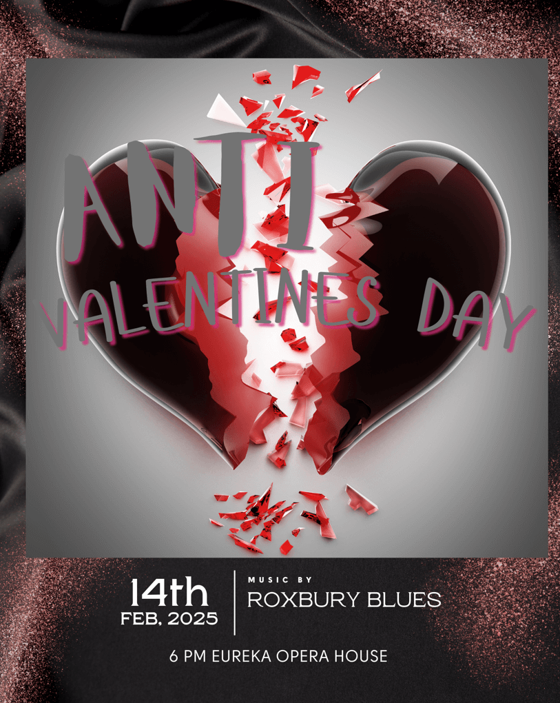 February 14 @ 6:00 pm - 8:00 pm Anti Valentines Day Eureka Opera House 31 S Main St, Eureka, NV, United States Music by Roxbury Blues