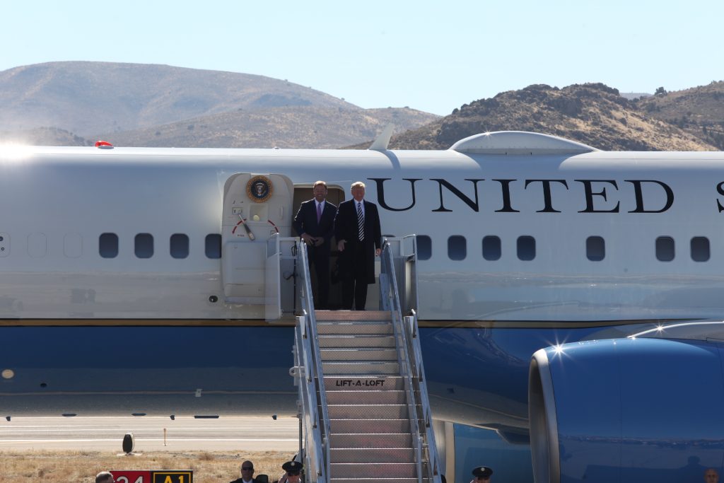 President Donald Trump exits Air Force One in Elko on Oct. 20 with Republican Sen. Dean Heller by his side.