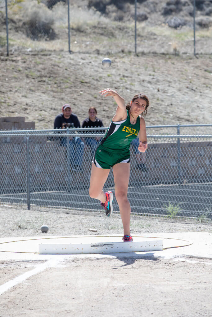 Eureka senior Alia Minoletti led her team in the shot put event Saturday at the Lowry Invitational in Winnemucca.